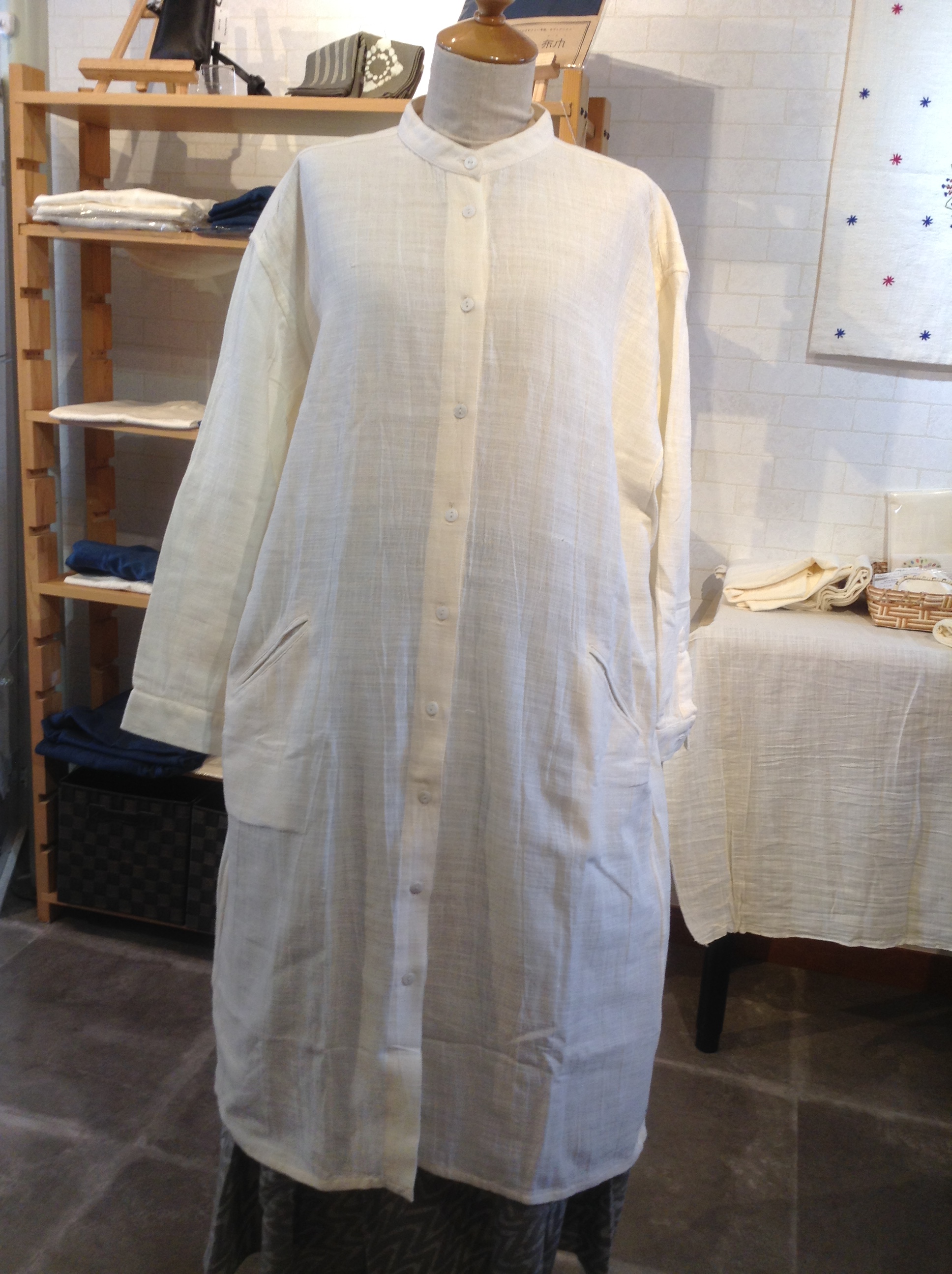 カディのシャツデザインをアレンジし、シャツドレスにしました。